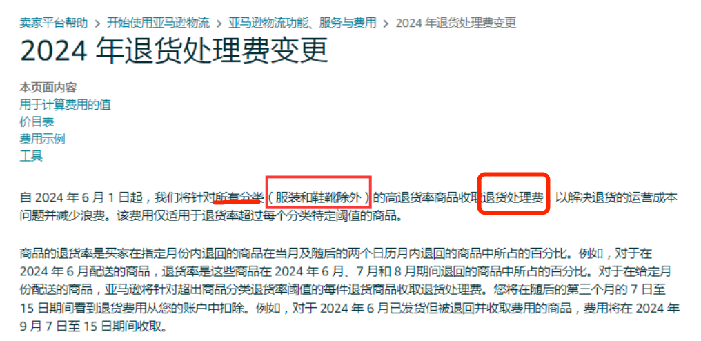 从2024年06月01日开始,亚马逊降针对除服装鞋靴产品之外的所有类目的高退货率产品,收取退货处理费。