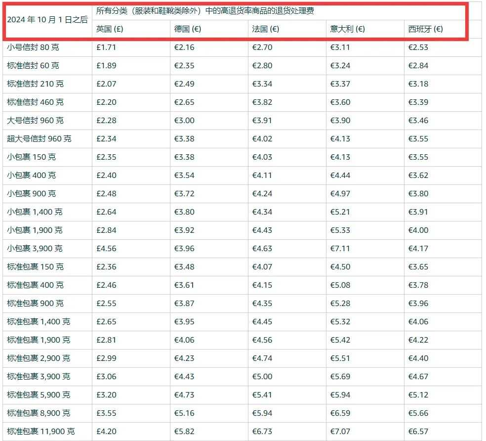 亚马逊欧洲5站新增退货处理费,10月1日生效!